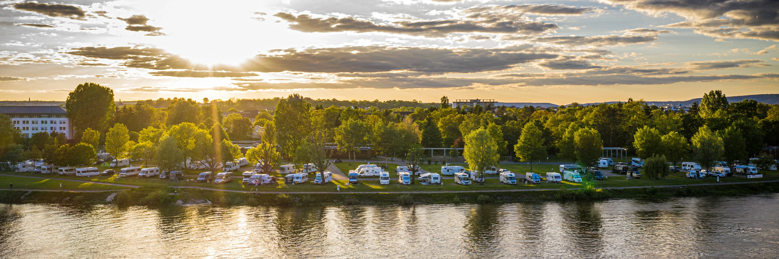 The 4-star Rhein-Mosel campsite is located directly at the confluence of the Rhine and Moselle rivers with a magnificent view of the Koblenz old town, the Deutsches Eck and the Ehrenbreitstein fortress. The almost 30,000 square metre site offers 210 pitches, modern sanitary facilities and catering facilities.